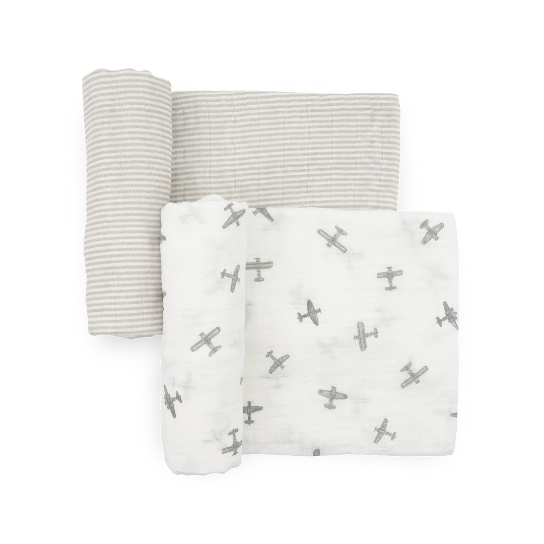 Little Unicorn Organic Cotton Muslin Swaddle Blanket Set (Pewter Planes)