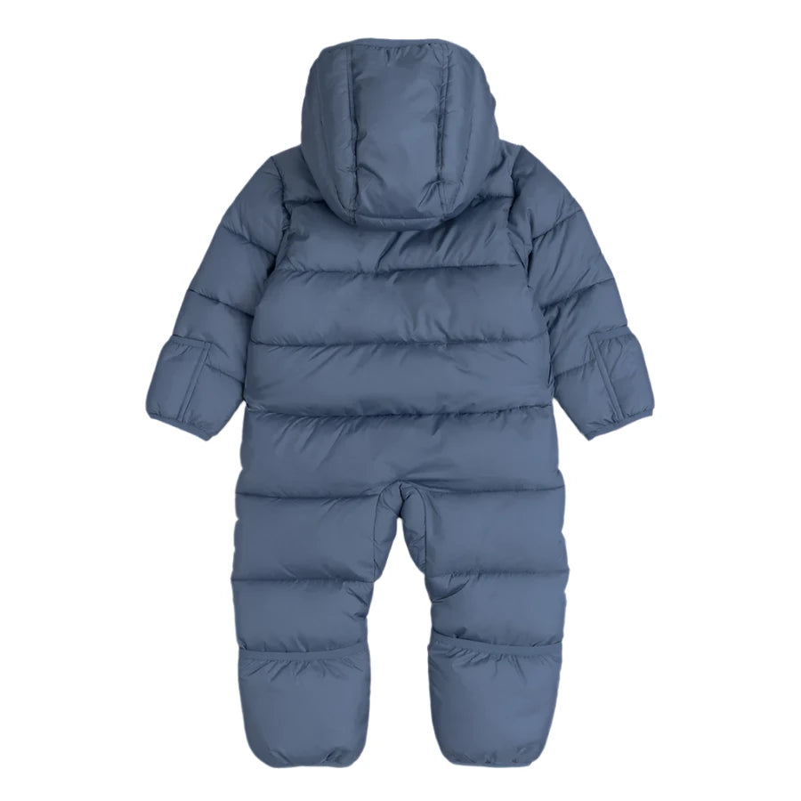 As they learn to toddle and walk, give them the freedom to explore the snow with this comfy puffer snowsuit. Fleece lined and with a sculpted hood, the all-in-one keeps them warm and protected from the wind and rain. With a full-length zip and fold-over hems and cuffs, the snowsuit is easy to put on and take off after another snowy adventure.