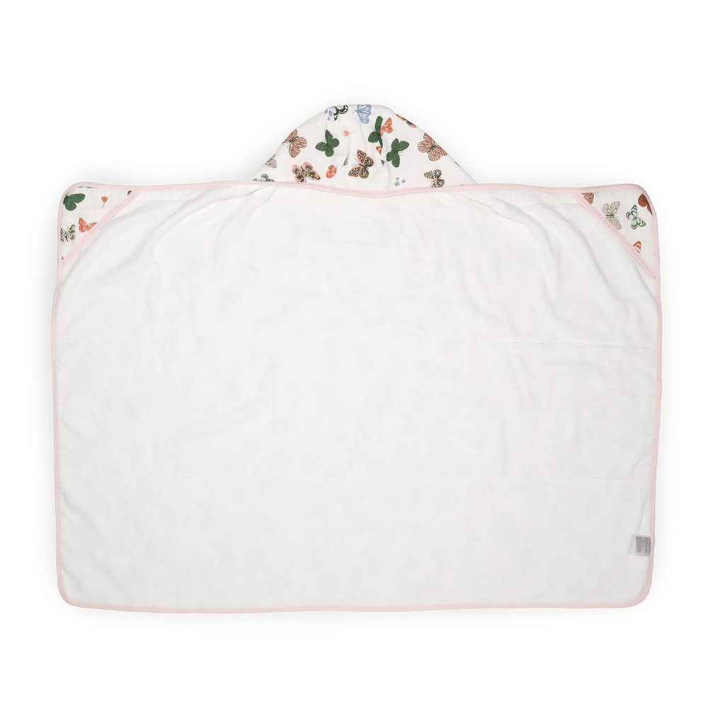 Splash into bath time with a plush and absorbent hooded towel. Featuring a cozy hood and pockets for little hands, the hooded towel is crafted with printed muslin on the outside and ultra-soft terry cloth on the inside.