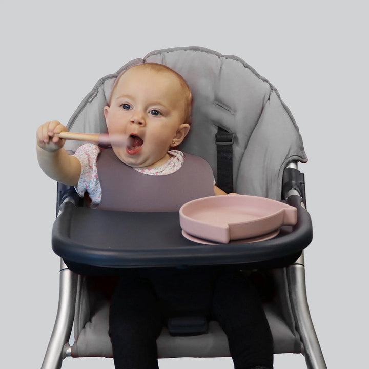 The Kushies SiliKitty Silicone suctions to most tables and high chairs making feeding time easy and practical. Made of food-grade silicone, this mess free plate is light weight, portable and easy to clean. Your child will love finishing their meal to get to the cute embossed kitty face which is guaranteed to please your toddler during mealtime. Freezer, dishwasher, microwave and oven safe, this plate has you covered. Once your child is weaned, keep it and use as a baking mould, paint palette, and much more.