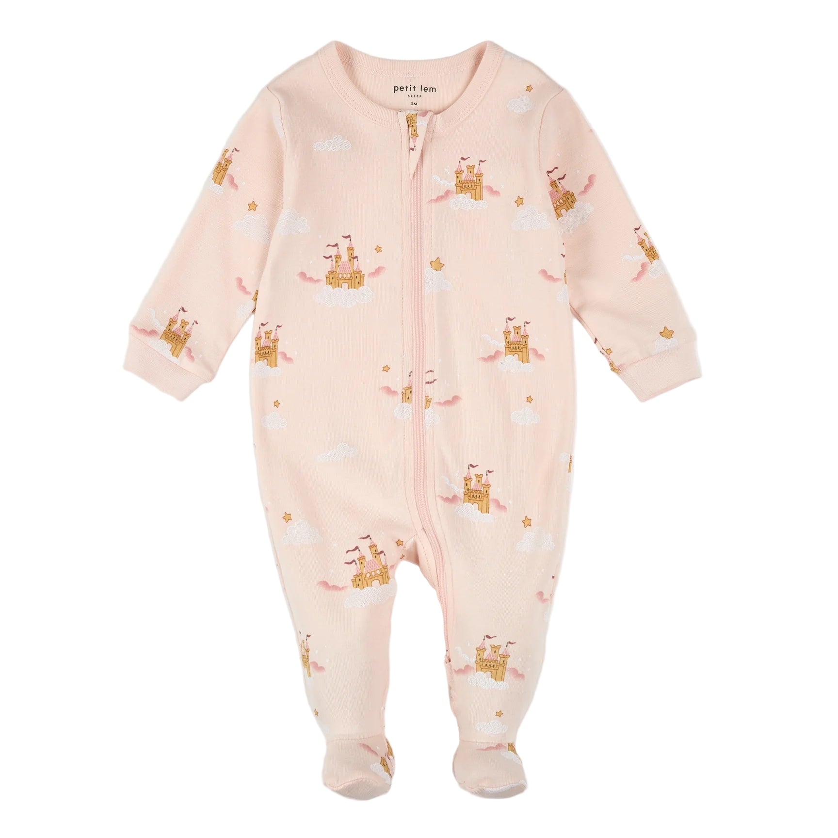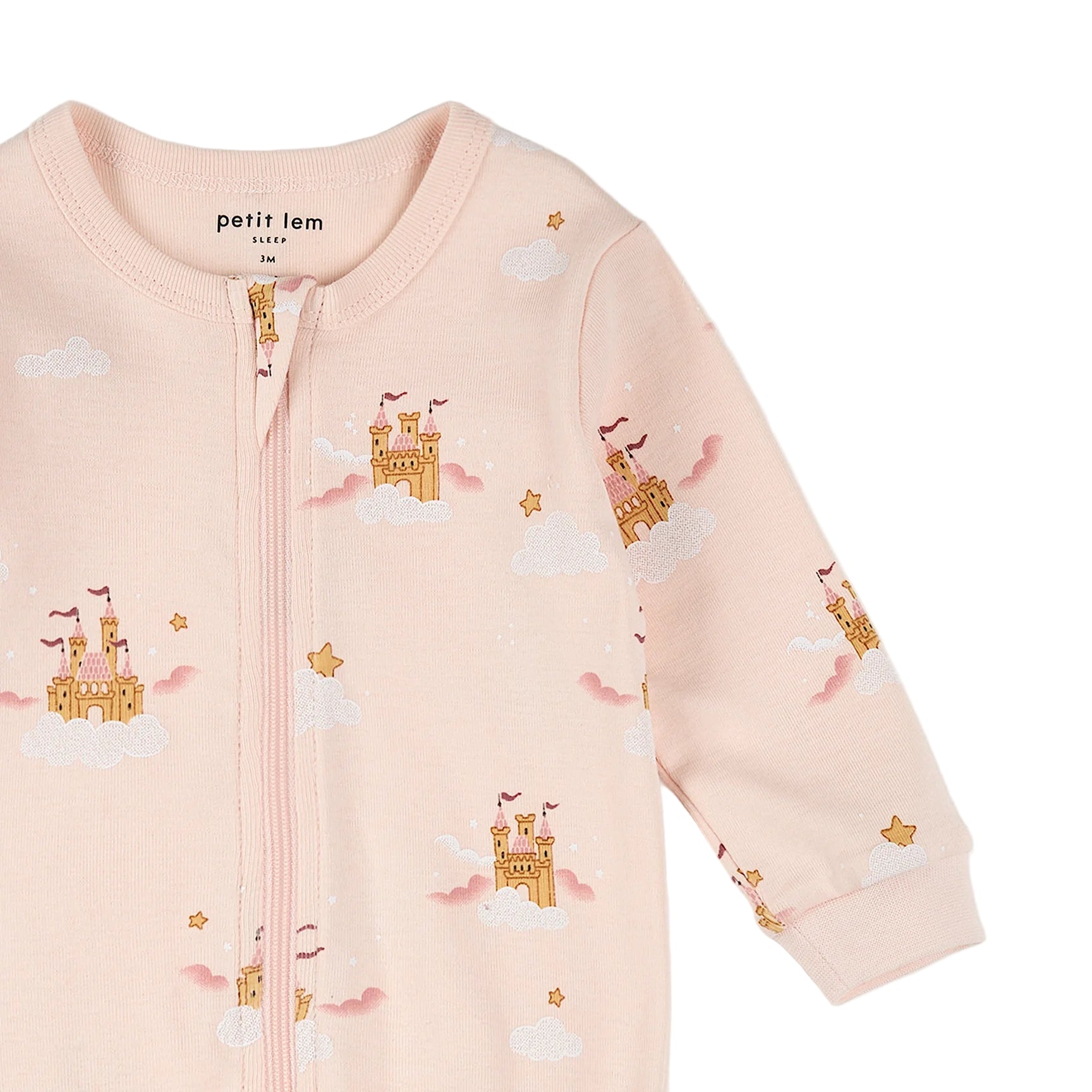 Let their imagination run wild with this Magic Castle print sleeper and a few bedtime stories. Made with organically grown cotton rib, the pink one-piece has a delicate and soft feel, making bedtime extra dreamy. Integrated feet keep her tiny toes snug while the ribbed cuffs allow her to explore her magical surroundings.Ā