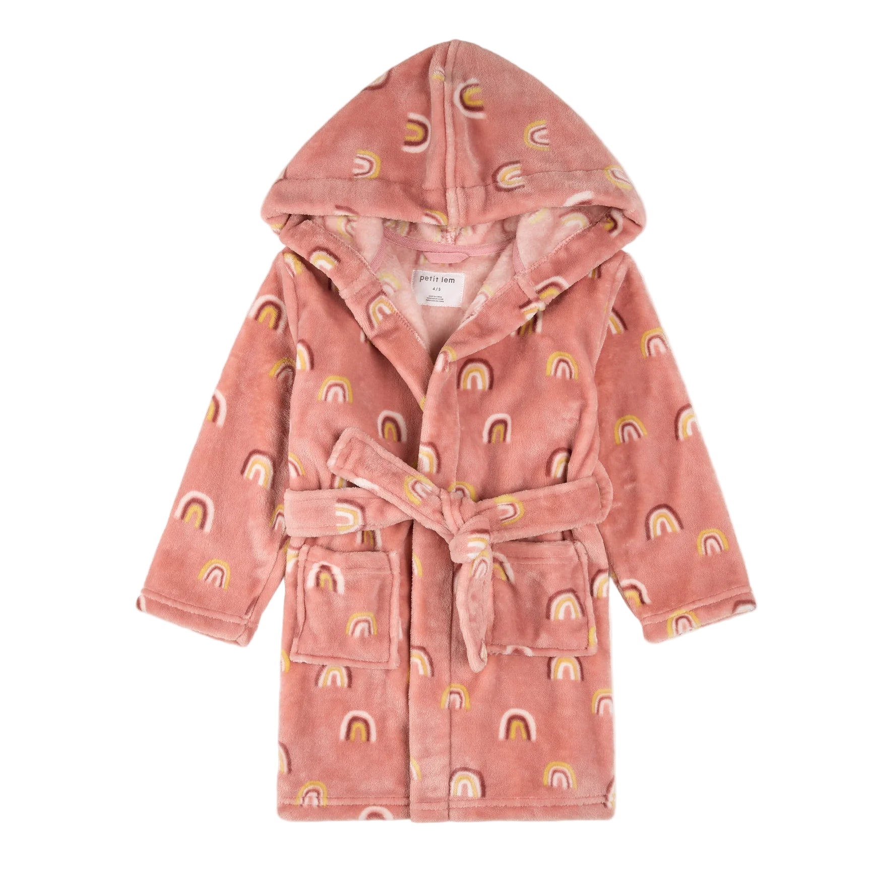 Wrap them in warmth and magic after their bedtime bath with this ultra-cozy plush robe. Featuring an all-over Rainbow print, it’s the perfect way to brighten up a gloomy grey day. The soft robe has a cozy hood, a comfortable waist tie and a handy loop for hanging on their door.