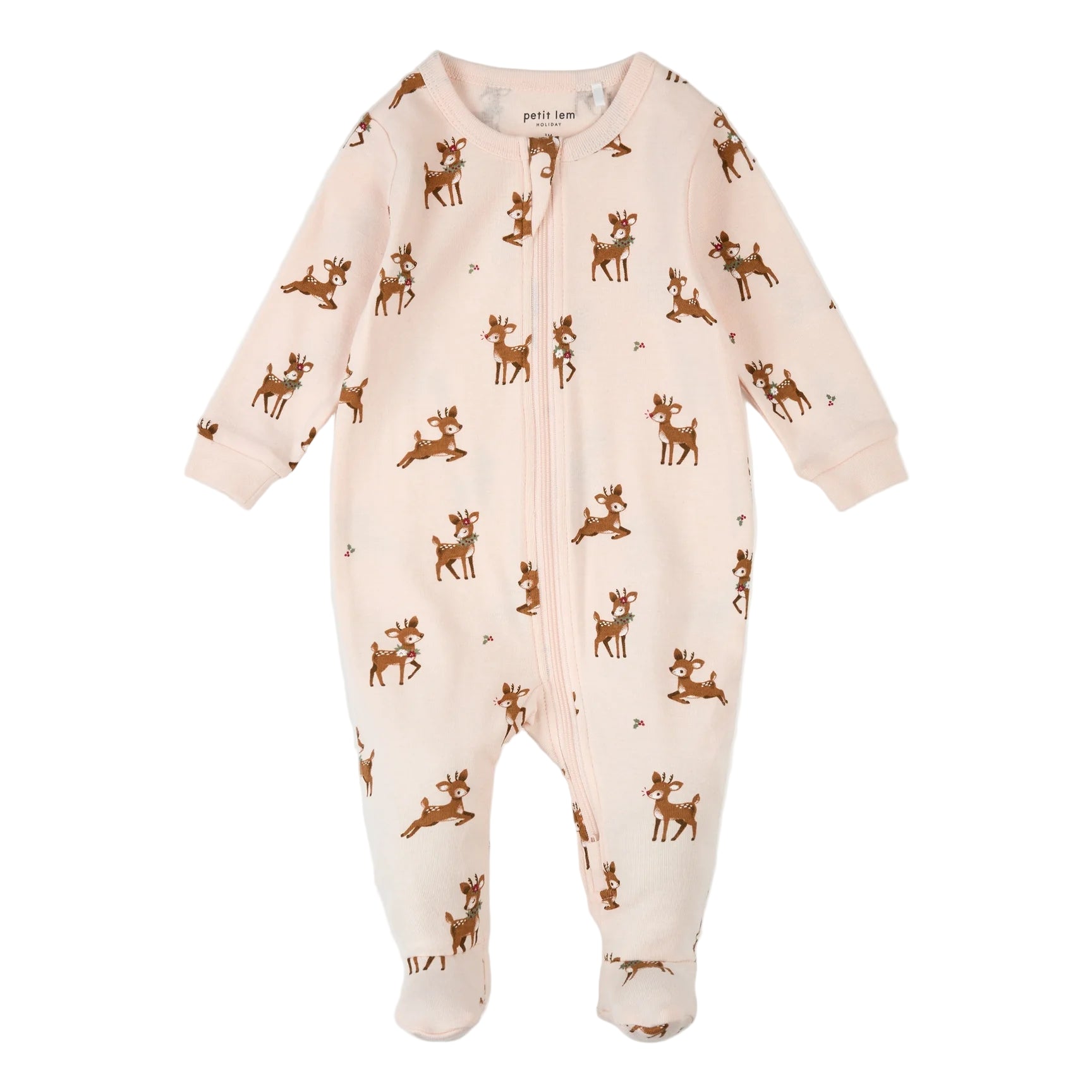 Soft, sweet, and ready for Santa’s arrival. This pretty-in-pink sleeper features an adorable Reindeer print that’s perfect for cozying up during the holidays. The integrated feet and ribbed cuffs keep her snug, while the two-way zipper makes changes a breeze.