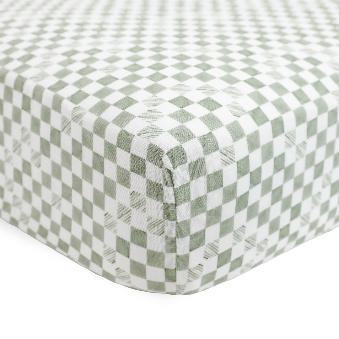 Little Unicorn Organic Cotton Muslin Crib Sheet (Green Checkers)