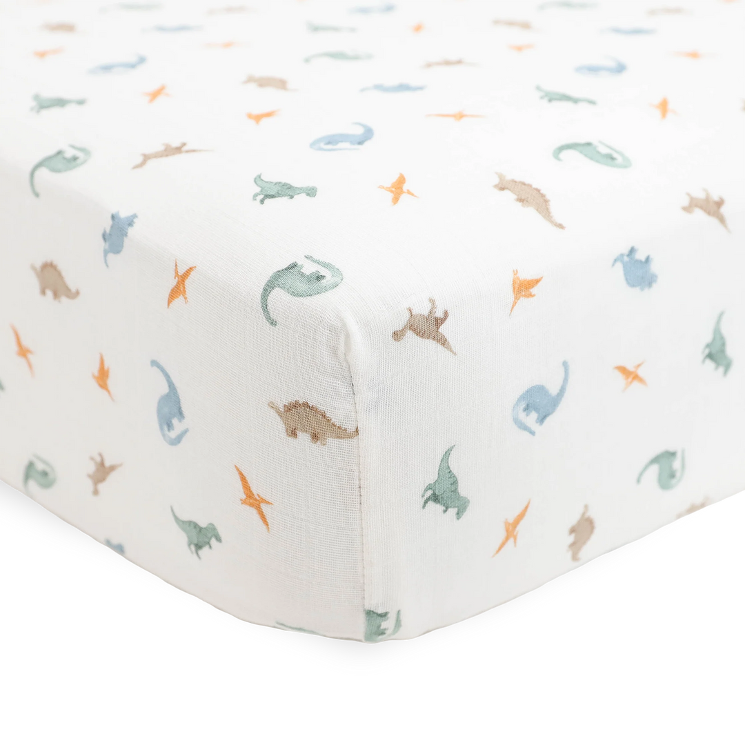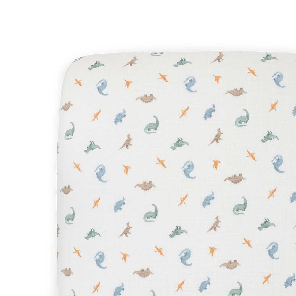 Little Unicorn Cotton Muslin Crib Sheet (Dino Friends)