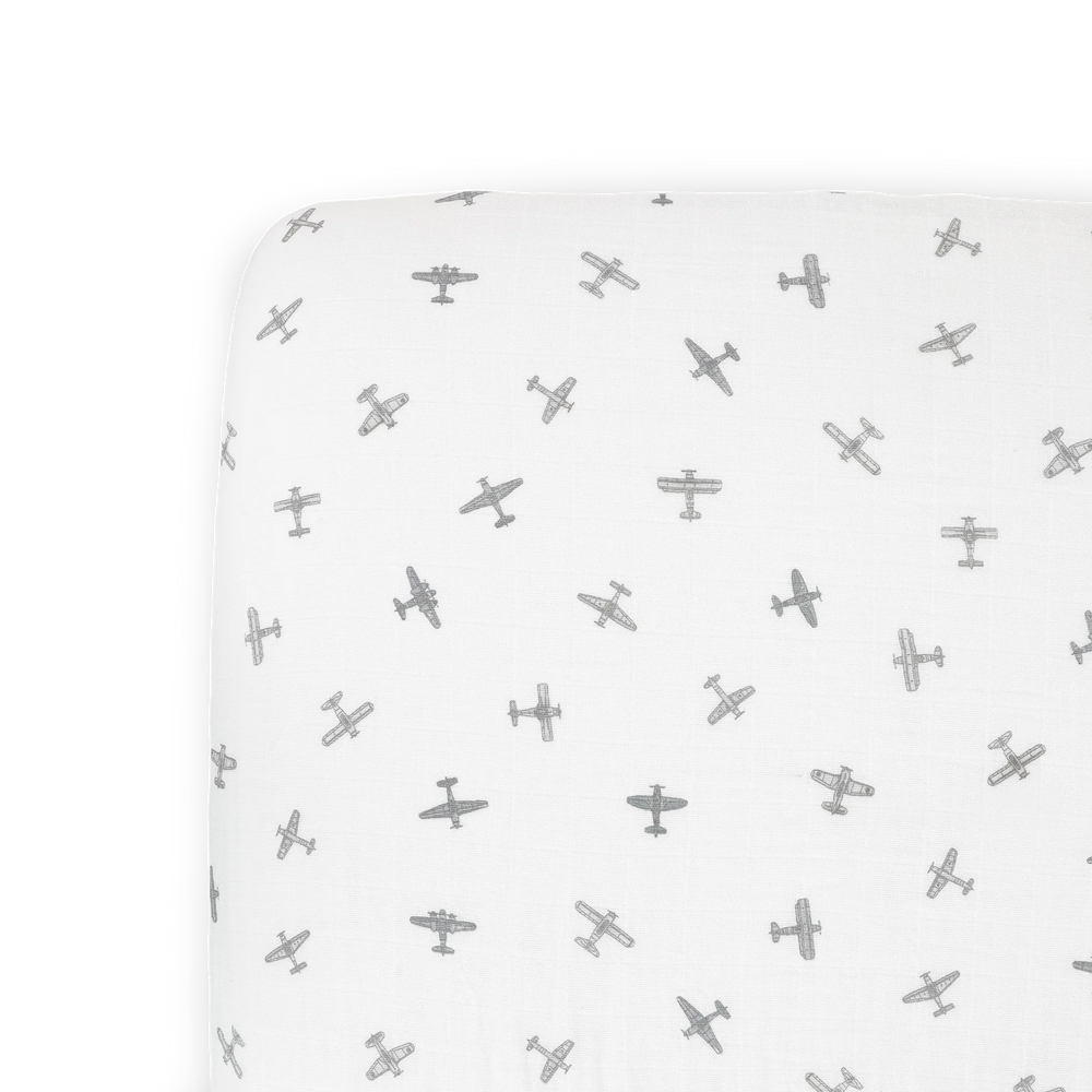 Little Unicorn Organic Cotton Muslin Crib Sheet (Pewter Planes)