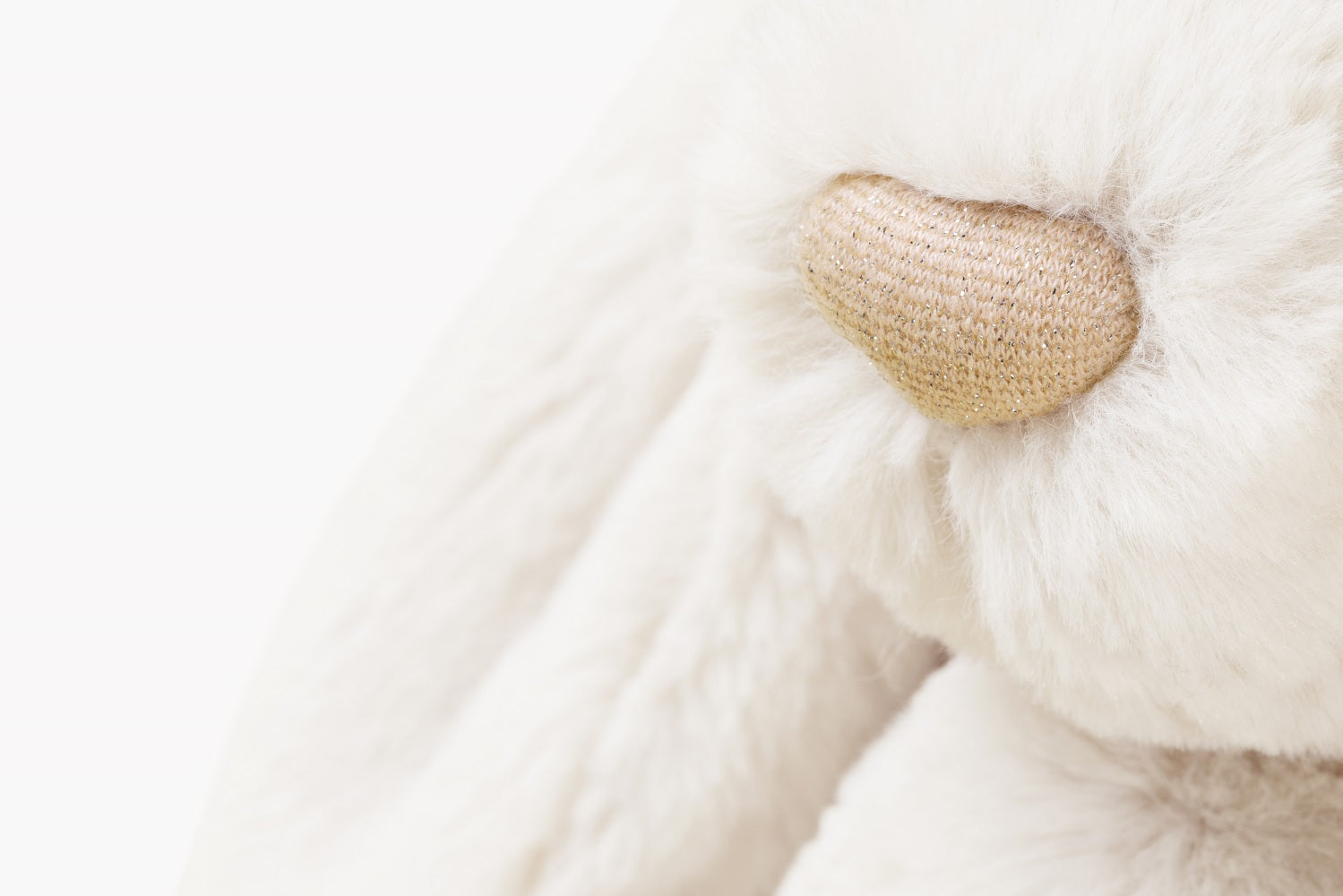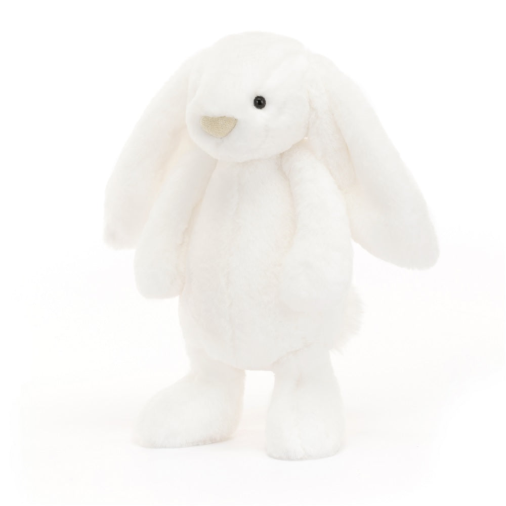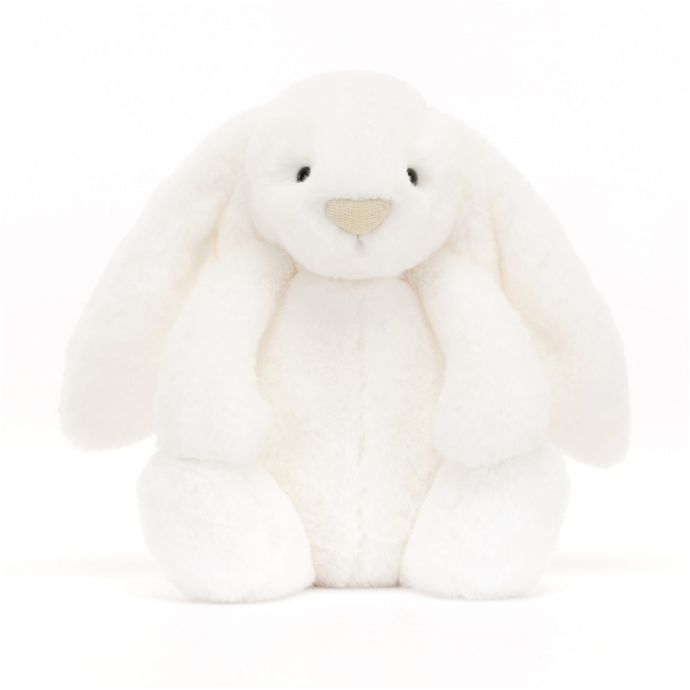 Super soft with fur white as snow, it’s Bashful Luxe Bunny Luna! This wintery wonder has a very fluffy tail and a sparkly stitchy gold nose, and gives the biggest, warmest hugs all year long!