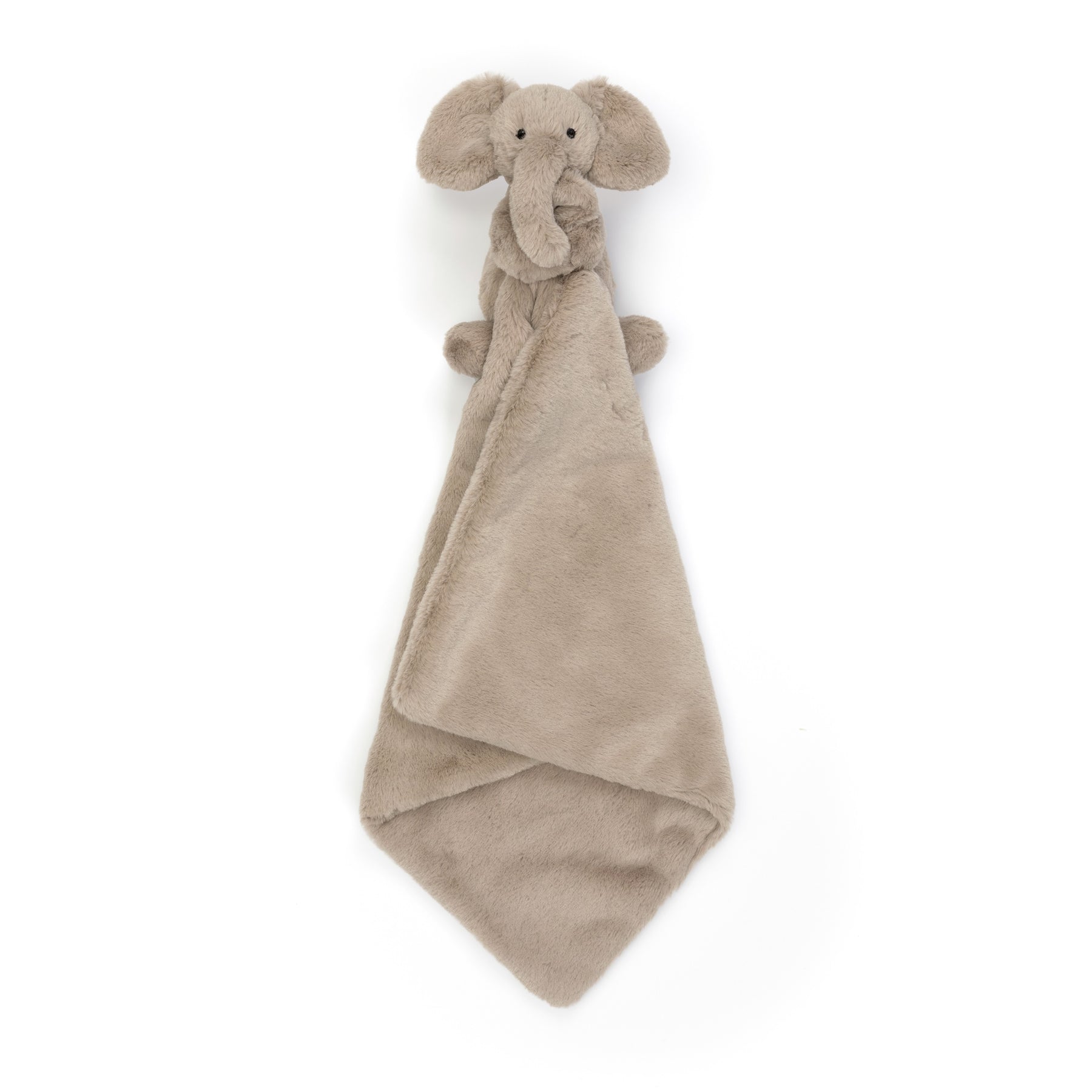 Smudge Elephant Soother is divinely soft in a sumptuous warm grey fur. With big petal ears, stitched eyes and squashy paws holding on tight to a square shaped un-stuffed soother. An exquisite gift for newborns, presented in a satin sheen gift box with gold foil detail and matching gift card.