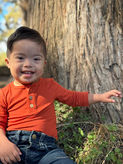 Rib? Yes. Your eyes are not deceiving you. Retro right? Who doesn’t love a ribbed fabric on soft 100% cotton. You can't go wrong with this ribbed onesie!