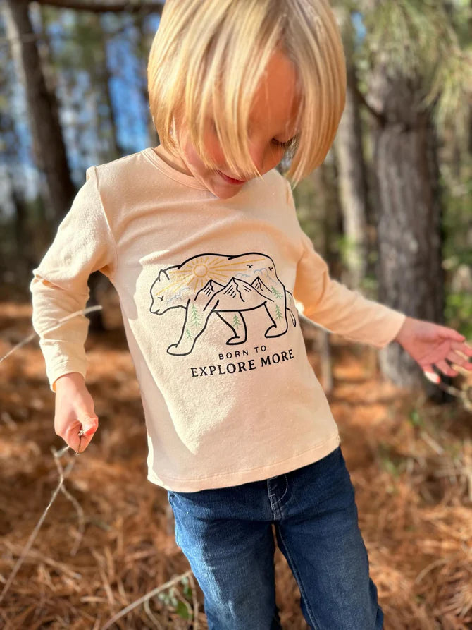 This cream printed tee features an adorable polar bear design, Perfect for your little one's next outdoor adventure.
