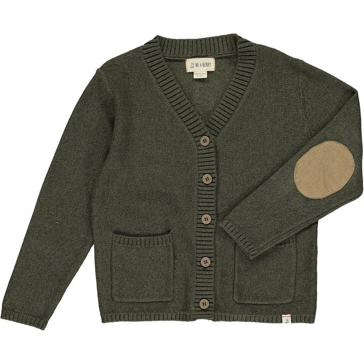 This classic academic-style cardigan features a soft knit with pockets and elbow patches.