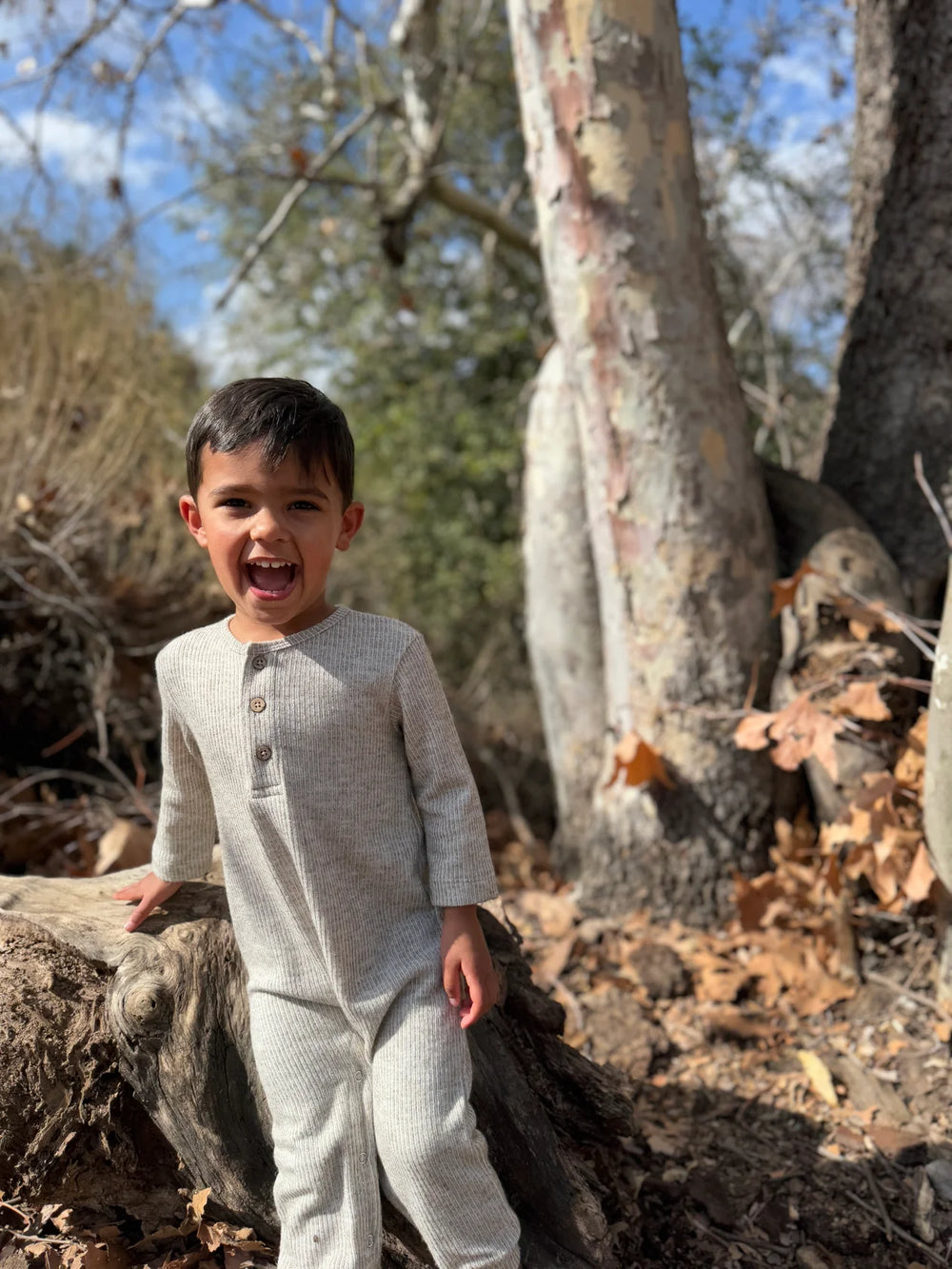 Me & Henry Mason Rib Romper (Heathered Biscuit)