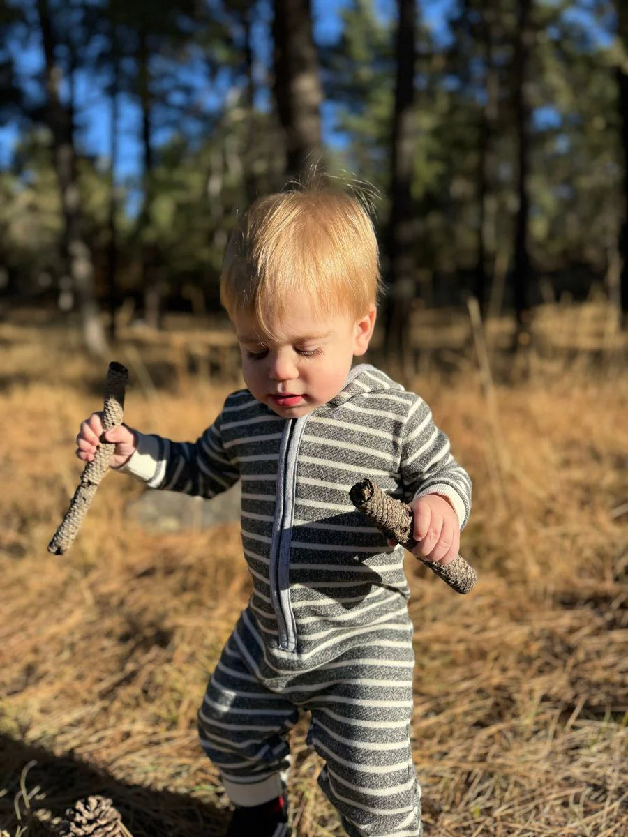 Me & Henry Helford Onesie (Grey/White Stripe Gauze)