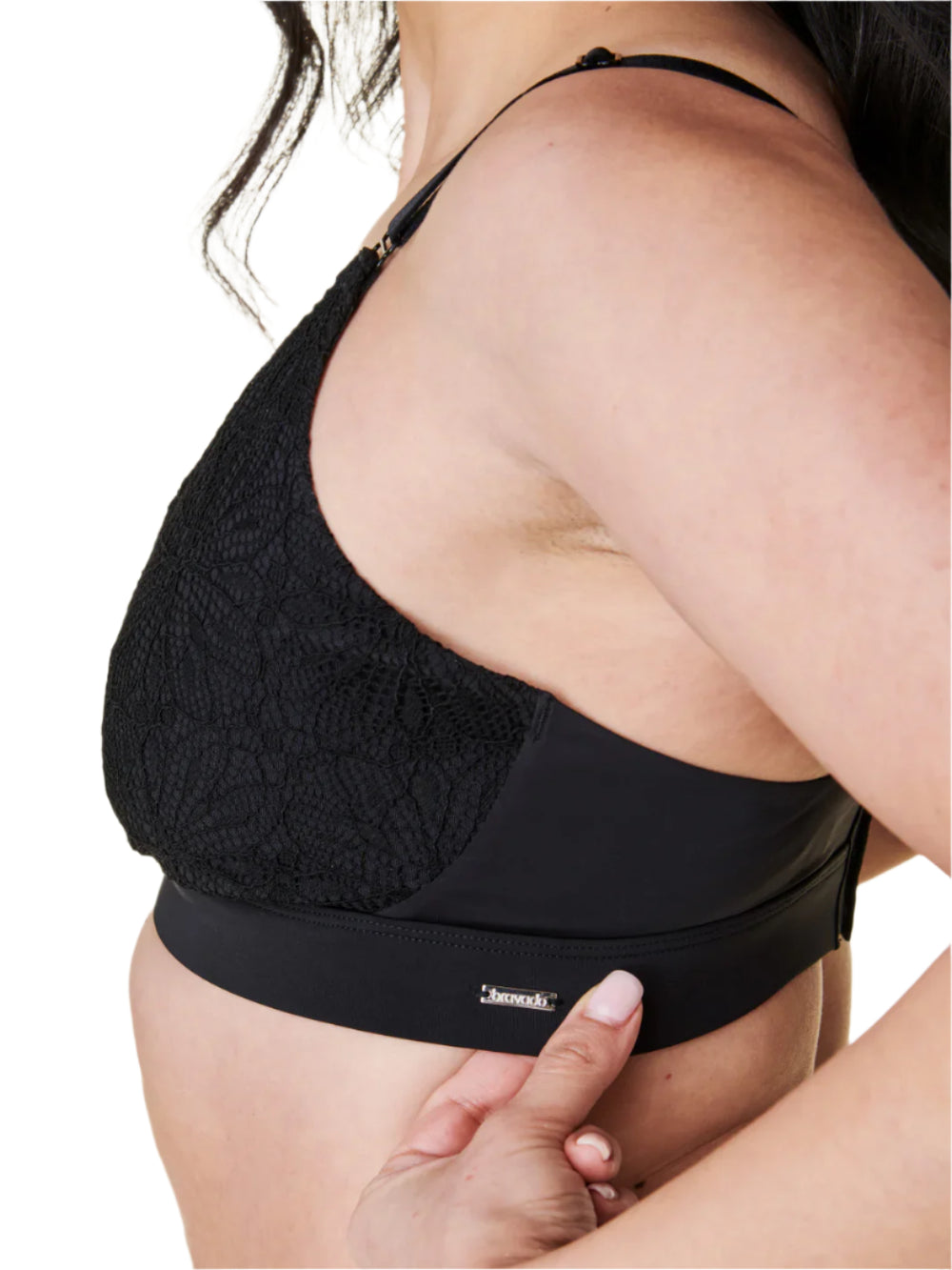Indulge in the delicate charm of our wireless Lace Bralette. Designed to offer unpadded light support, this lovely and feminine bralette combines beautiful stretchy lace detailing with delicate scalloped edges. The crossover plunge neckline and low profile back offers a touch of prettiness. Flattering and comfortable, ensuring you feel confident and beautiful every day.
