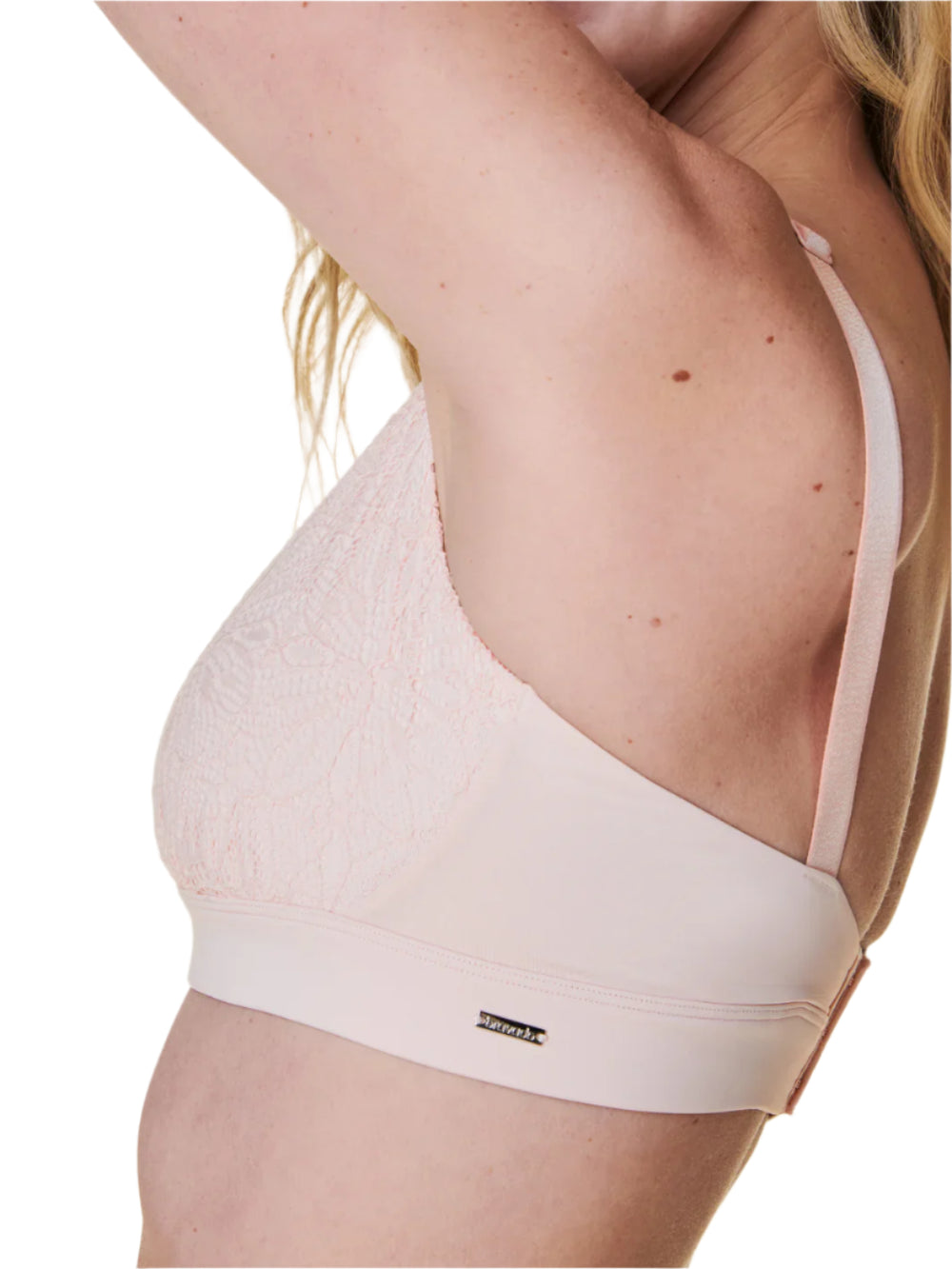 Indulge in the delicate charm of our wireless Lace Bralette. Designed to offer unpadded light support, this lovely and feminine bralette combines beautiful stretchy lace detailing with delicate scalloped edges. The crossover plunge neckline and low profile back offers a touch of prettiness. Flattering and comfortable, ensuring you feel confident and beautiful every day.