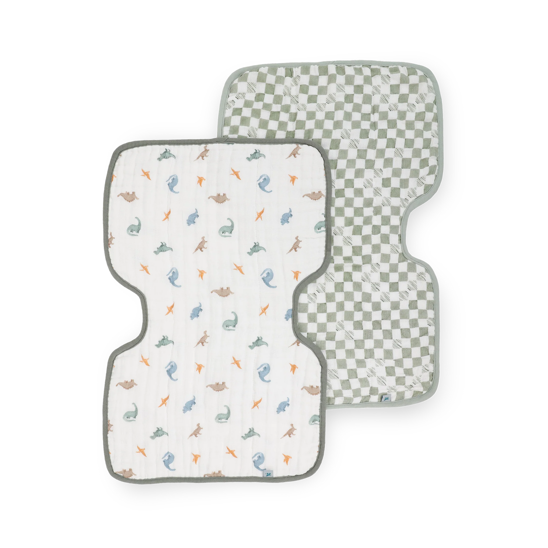Little Unicorn Organic Cotton Muslin Burp Cloth 2-Pack (Little Dino/Green Checker)