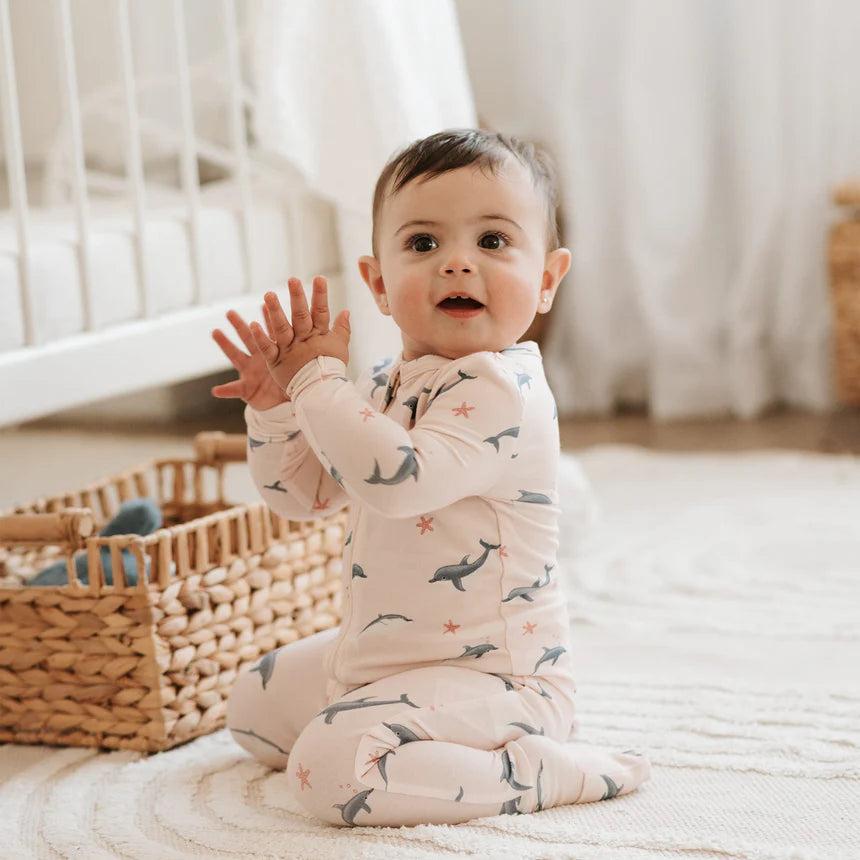 Designed to grow with your little one as they transition from crawling to cruising, this ribbed sleeper features fold-over feet. The ribbed feet keep toes warm on chilly nights while leaving the feet exposed for grip when folded over. The snug fit and two-way zip make nighttime changes quick and easy, too. Featuring a delicate poppy print, the sleeper has a timeless style to pass down from sibling to sibling.