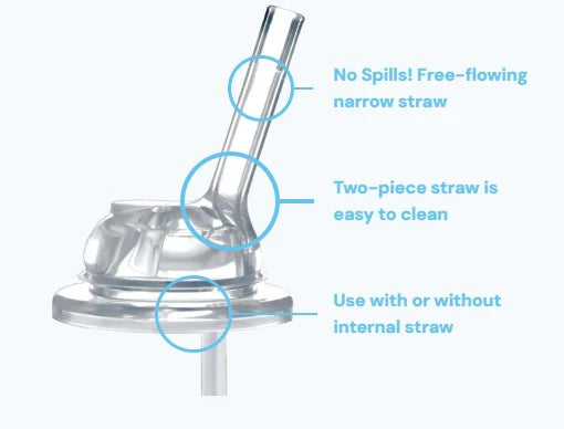 • Two piece straw design allows kids to drink upright (with the straight straw attached) or by tipping the bottle up (with straight straw removed)